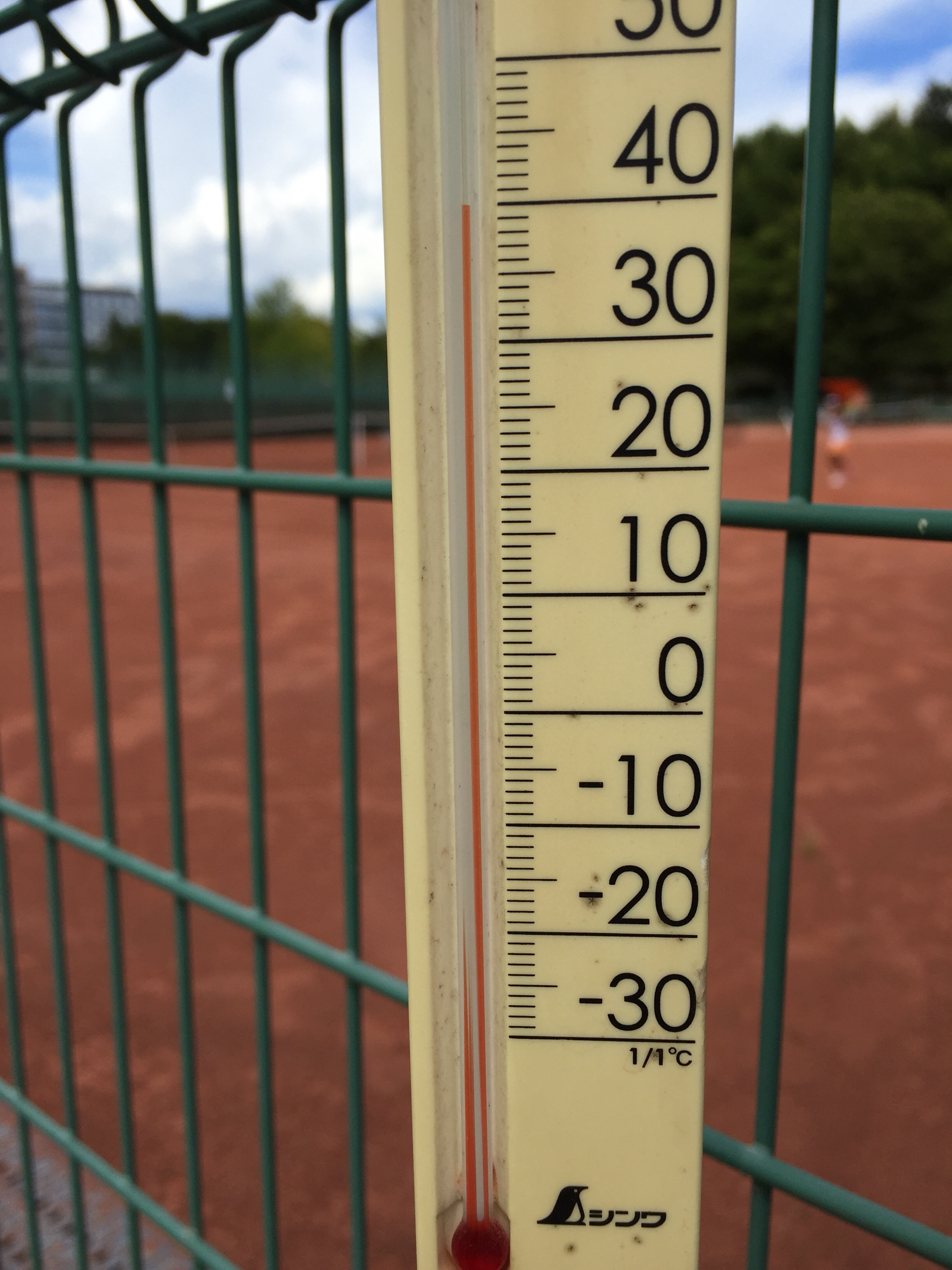 そして、午後の部・・・なのですが、ふとコートサイドにぶら下げてある温度計を見たら・・・40度!!