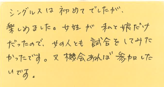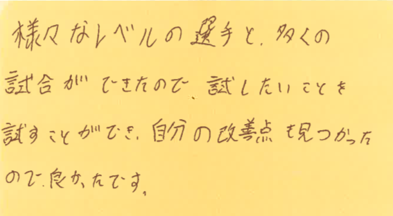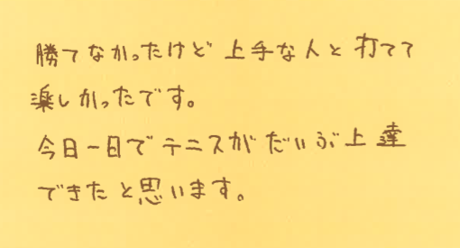 「今日一日でテニスがだいぶ上達できたと思います」・・・とのことですが、本当に良かったです!