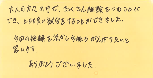 ジュニアの選手は、ジュニアの選手同士で対戦した方がいい!!という意見があるのは当然ですが、意外にも大人に混じって対戦すると、実は得るものが非常に多かったりします!