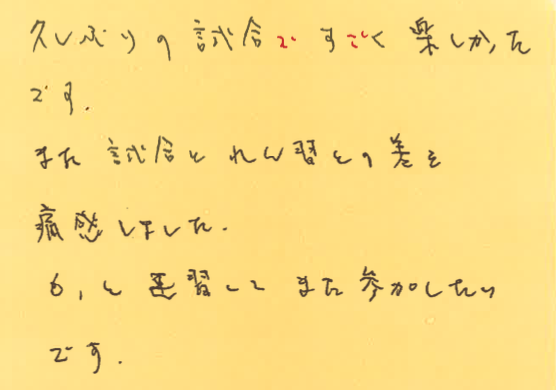 色々な方と試合ができて楽しかったとのこと、良かったです!!