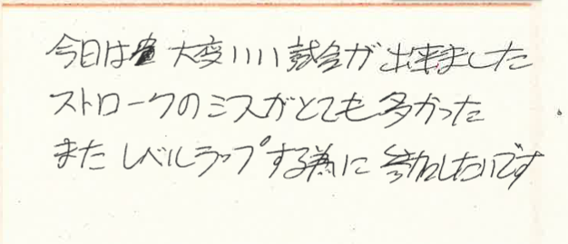 ストロークのミスがとても多かった・・・とのことですが、練習だと「はい、もう1球!」っていう感じであまり気にならないのですが、試合だと、相手に1ポイント入ってしまうので、普段よりも強く気になるんですよね!
