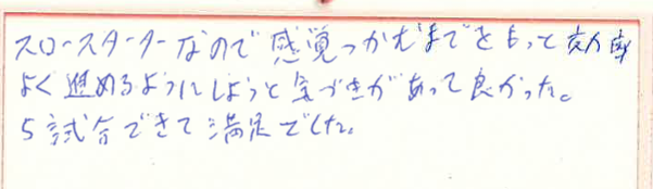 そして、5試合できて、満足していただけたとのこと、良かったです!
