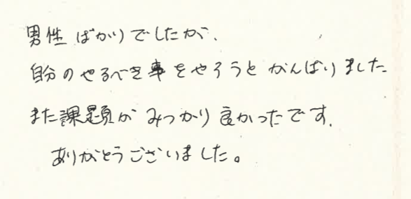 課題が見つかって良かったとの頃、主催者としても嬉しいです!