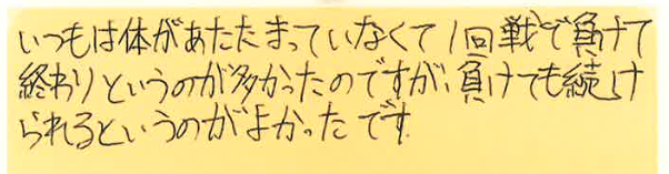 体が温まっていないせいで、1回戦で負けて終わりっていうの、本当に悔しいですよね!