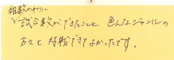 組数が少なかったのですが、色んなジャンルの方々と対戦できたとのこと、お楽しみいただけて、よかったです!!