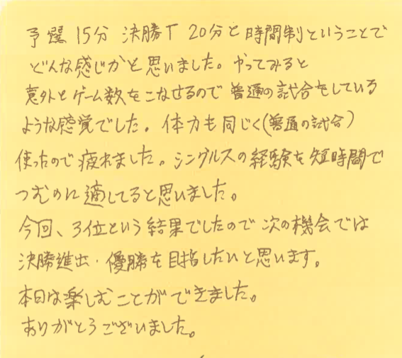 「シングルスの経験を短時間で積める」とおっしゃっていただき、嬉しい限りです!!