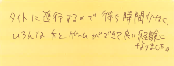 待ち時間が少なく、いろんな方との試合を楽しんで頂けて、良かったです!