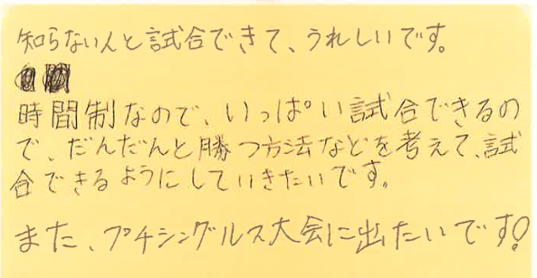 それと、時間制なので、体力的な面も含めて、たくさん試合ができるだけじゃなく、しっかりと楽しめるので、おっしゃる通り、勝つ方法を考えながら試合をしていったら、だんだん勝てるようになるはずです!!