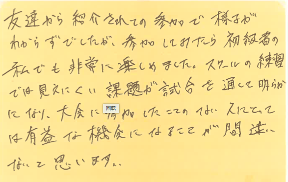 楽しんで頂け、さらに試合を通して課題が明らかになったとのことで、大変うれしいです!