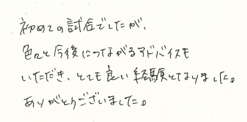 アドバイスも含めて、良い経験になったとのことで、うれしいです!