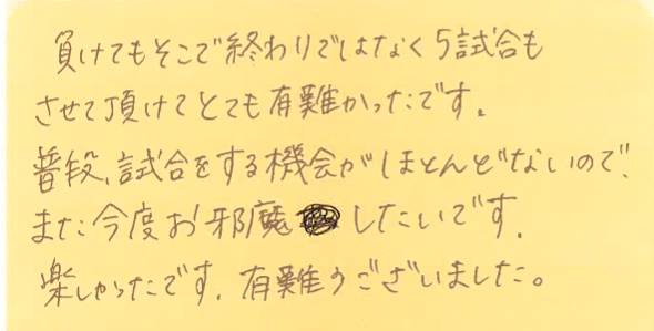 負けても終わりでではない、プチシングルス大会の特徴である5試合保証をしっかりとお楽しみいただけたようでよかったです!