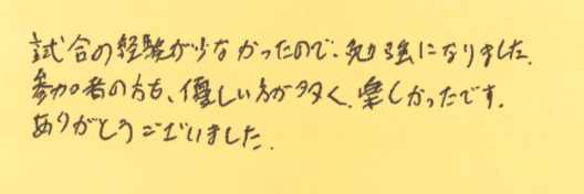 そして、肝心の試合も楽しんで頂けて、さらに今後のやる気につながりそうとのことで、とてもうれしいです!