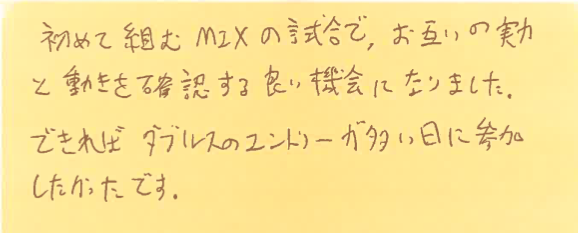 ダブルスのエントリー、次回はたくさん集まるよう、頑張りますので、ぜひまたご参加くださいませ!