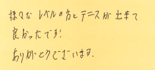様々なレベルの方との試合を楽しんで頂けて、良かったです!