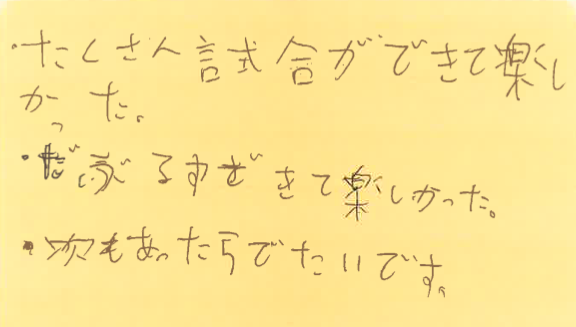 色々なレベルの人とたくさんの試合を楽しんでもらえて、良かったです!