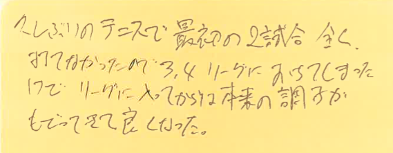 久しぶりのテニスを楽しんで頂けて、良かったです!