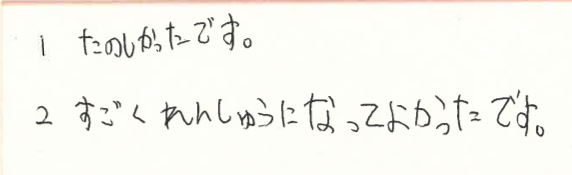 楽しんで頂けて、さらに良い練習になったとのことで、うれしいです!