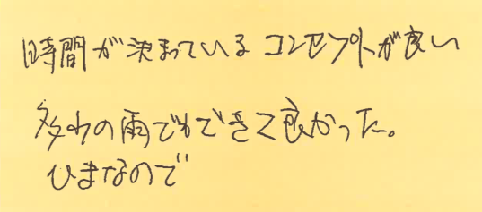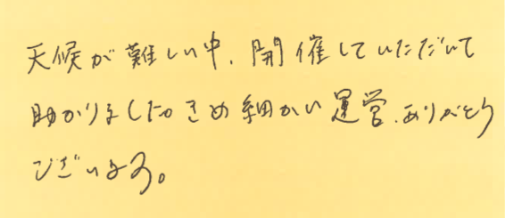途中、雨も降りましたが、最後までお楽しみいただけてよかったです!