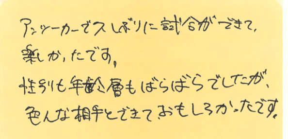 毎回、性別や年齢がバラバラなので、いろんな方との試合を楽しんで頂けます!