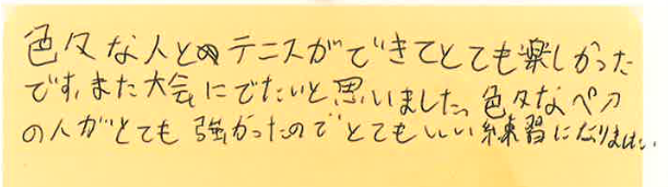 また、皆さんとコートでお会いできる日を楽しみにしております!!