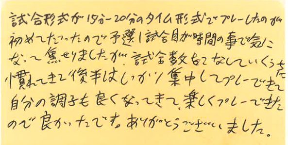 プチシングルス大会の杉下です!