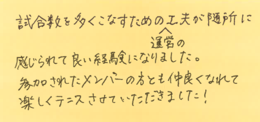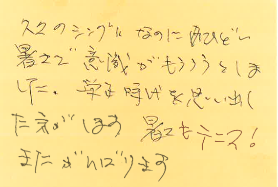 そんな中、「学生時代を思い起こさせる夏のテニス」を楽しんで頂けたということで良かったです!