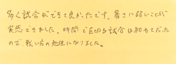 試合で学ぶこと、本当にたくさんあるので、良かったらまたご参加くださいませ!