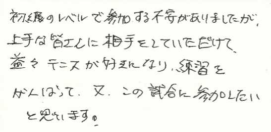 益々テニスが好きになられたとのこと、良かったです!!