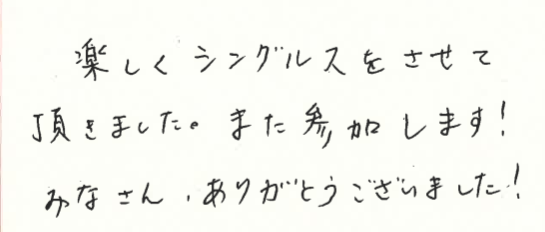 楽しくシングルスの試合ができて、良かったです!