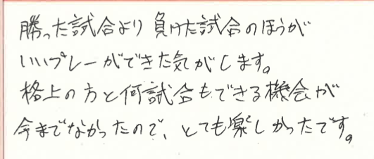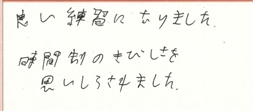 良い練習になったとのことで、良かったです!