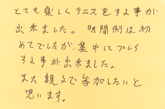 また、皆さんとコートでお会いできる日を楽しみにしております!!