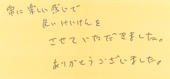 「常に楽しい感じで良い経験だった」とのことで、うれしいです!