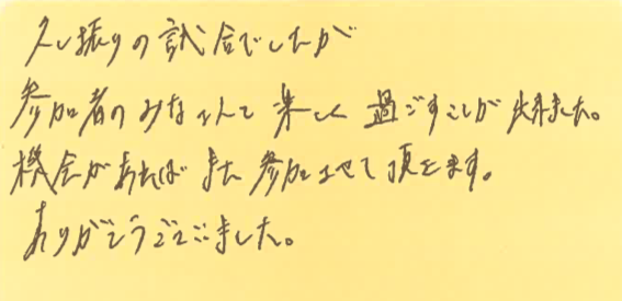 たくさんの試合と、他の参加者の方との交流の両方を楽しんで頂けて、うれしいです!