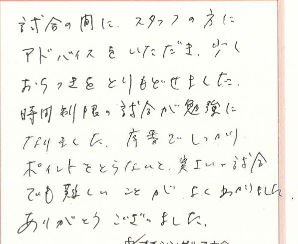 時間制限のある試合で、色々気づきがあって、良かったです!