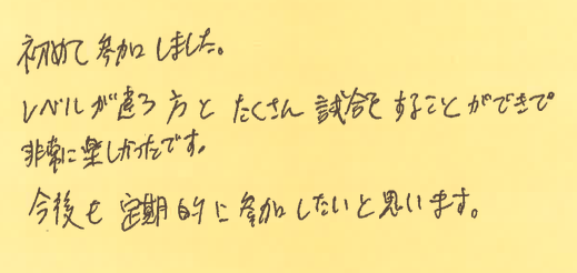 レベルが違う方とたくさん試合ができ、非常に楽しかったと言って頂き、嬉しいです!