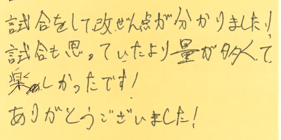 思っていたより試合の量が多く、楽しかったと言って頂き、嬉しいです!