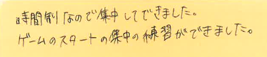 「ゲームのスタートの集中の練習ができた」とのことで、良かったです!