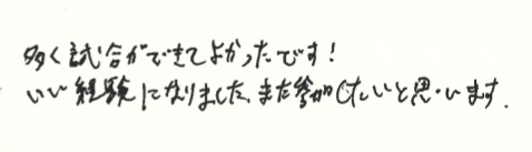 ぜひリベンジを兼ねて、また試合の経験を積みにご参加くださいませ!