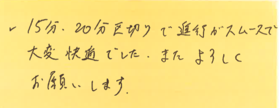 「進行がスムーズで大変快適だった」とコメントいただき、大変嬉しいです!