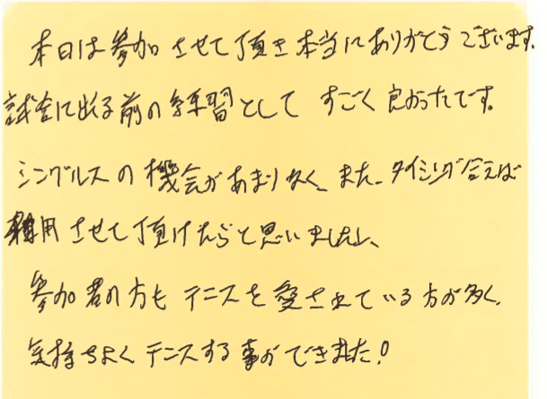 また、皆さんとコートでお会いできる日を楽しみにしております!!
