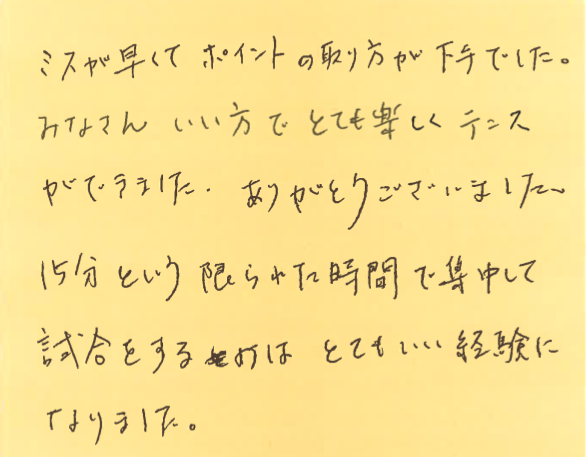 また、皆さんとコートでお会いできる日を楽しみにしております!!
