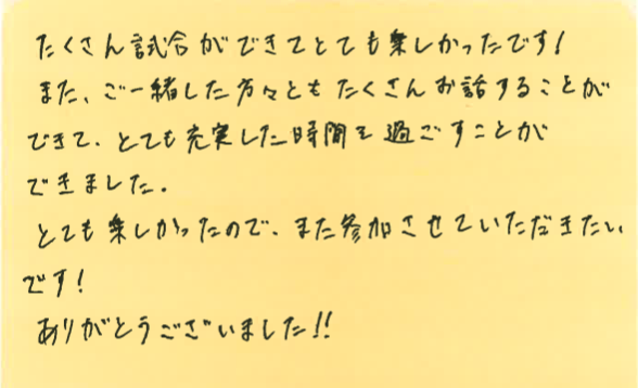 今回は、2月5日、3月5日の調布大会に初めて参加された方の感想をシェアさせていただきます!