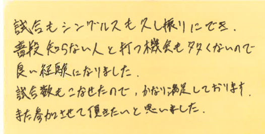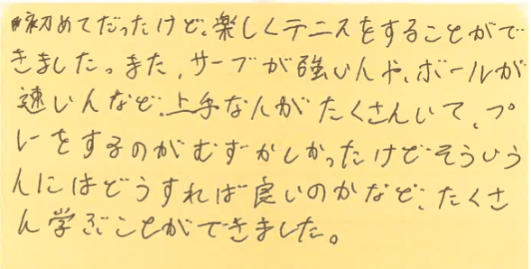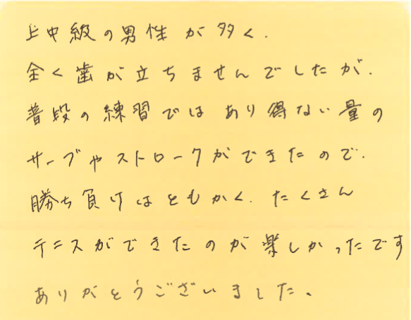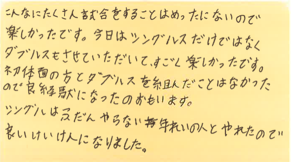 この経験を活かして、これからのテニスをより一層お楽しみください!!