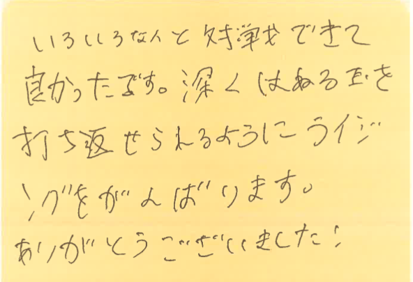そして、この日、初めて参加してくださった方よりいただいた感想も紹介させていただきます!