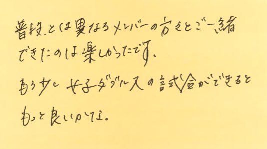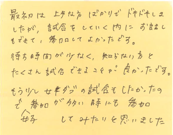 この日は、初参加の方が多かったのですが、皆さん、和気藹々としながら、しっかりと試合経験を積んでくださっておりました!