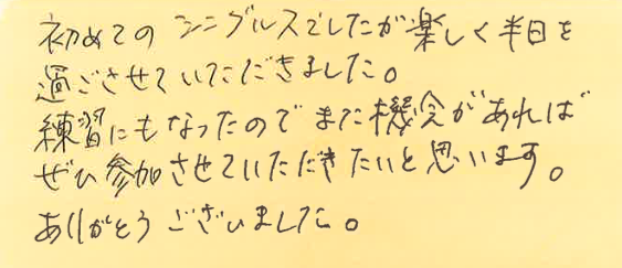 そして、この日、初めて参加してくださった方よりいただいた感想も紹介させていただきます!