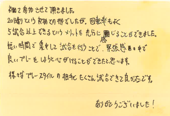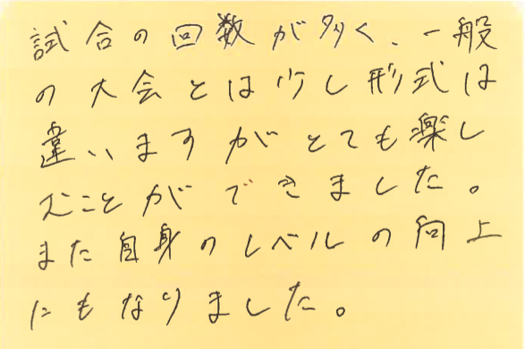 さて、今回は、9月2日と3日に開催した大会の写真と優勝された方のお名前、それと、一部の大会では、その日に初めて参加してくださった方よりいただいた感想をご紹介させていただきます!