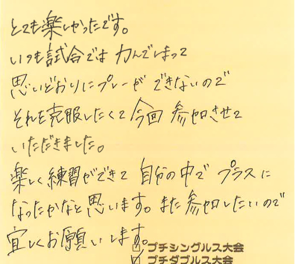 また、皆さんとコートでお会いできるのを楽しみにしております!