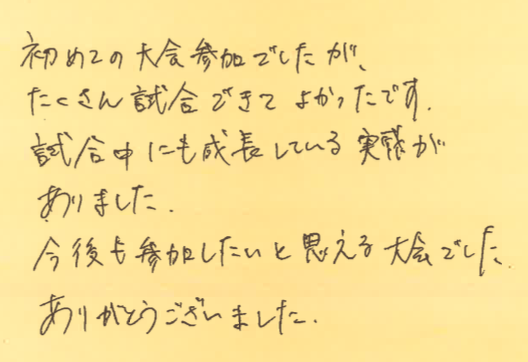 初めて参加された方が、大会を通して何を感じたのか?特に初めて参加しようとしている方の参考にしていただけたらと思います。
