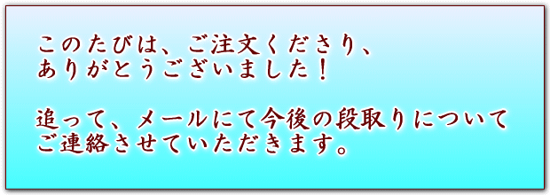 お申し込み後の段取りについて ・お申し込みいただきましたら、折り返し、入金先をご連絡させていただきます。 ・ご入金の確認が取れ次第、ノウハウをPDFファイルにて送信させていただきます。 ・PDFファイルを受け取れない方は、プリントアウトしてファイルに綴じた形で宅配便にて届けさせていただきます。(この場合、別途送料・手数料として1620円頂戴いたします。) ・代引きでの発送も承ります。(送料・手数料として1620円頂戴いたします。)